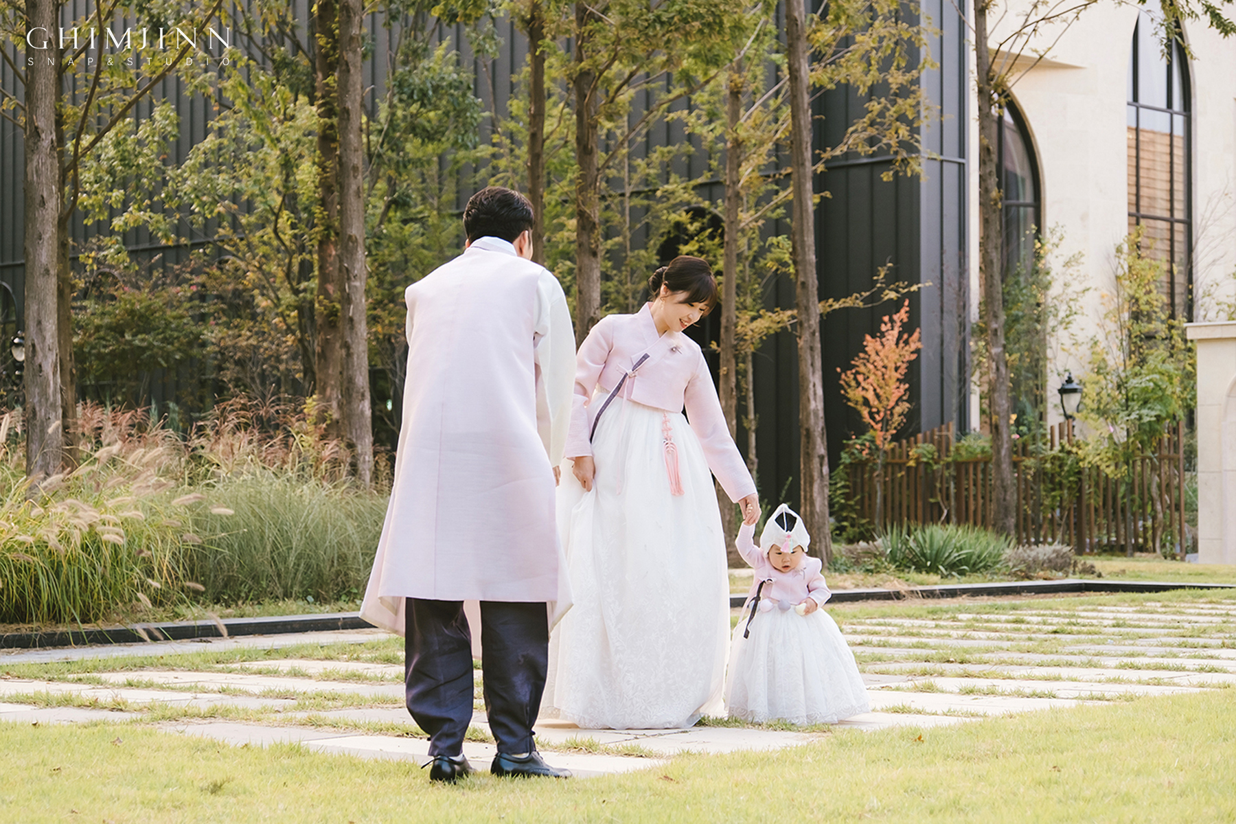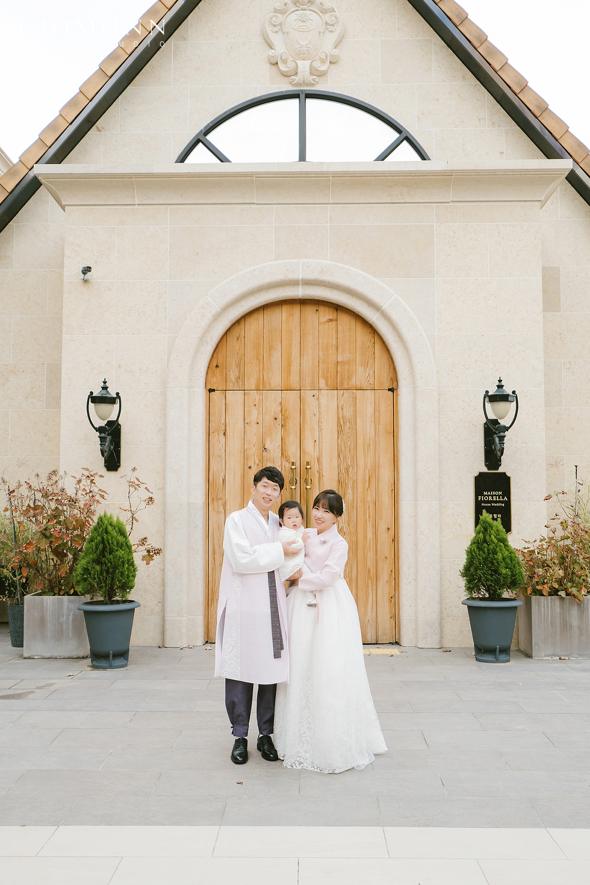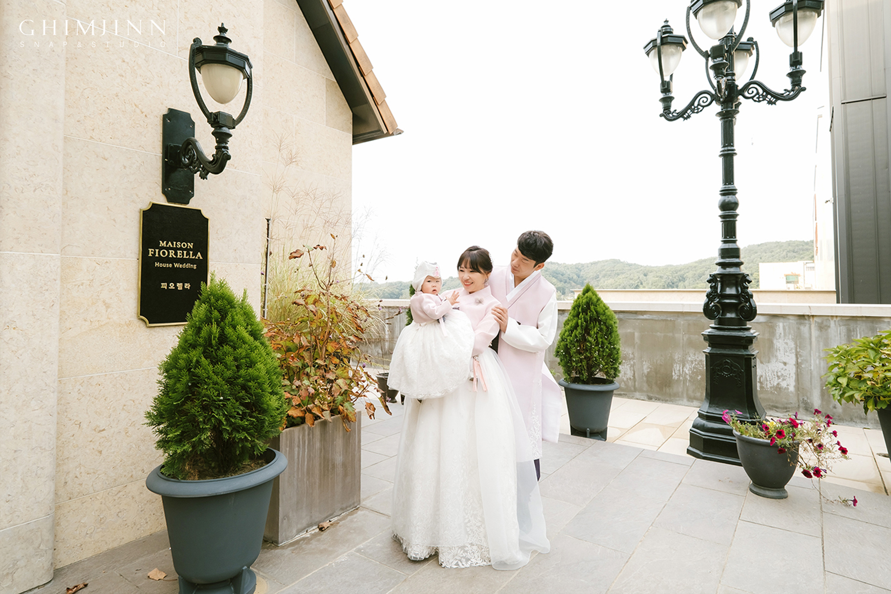 이렇게 작은 정원이 잘 조성되어있어서 야외에서 다양하고 예쁜 촬영이 가능합니다. 촬영 시간대 또한 날은 흐렸지만 해가 지기 전으로 대비가 낮고 전체적으로 부드럽고 포근한 느낌의 사진이 완성되었어요.