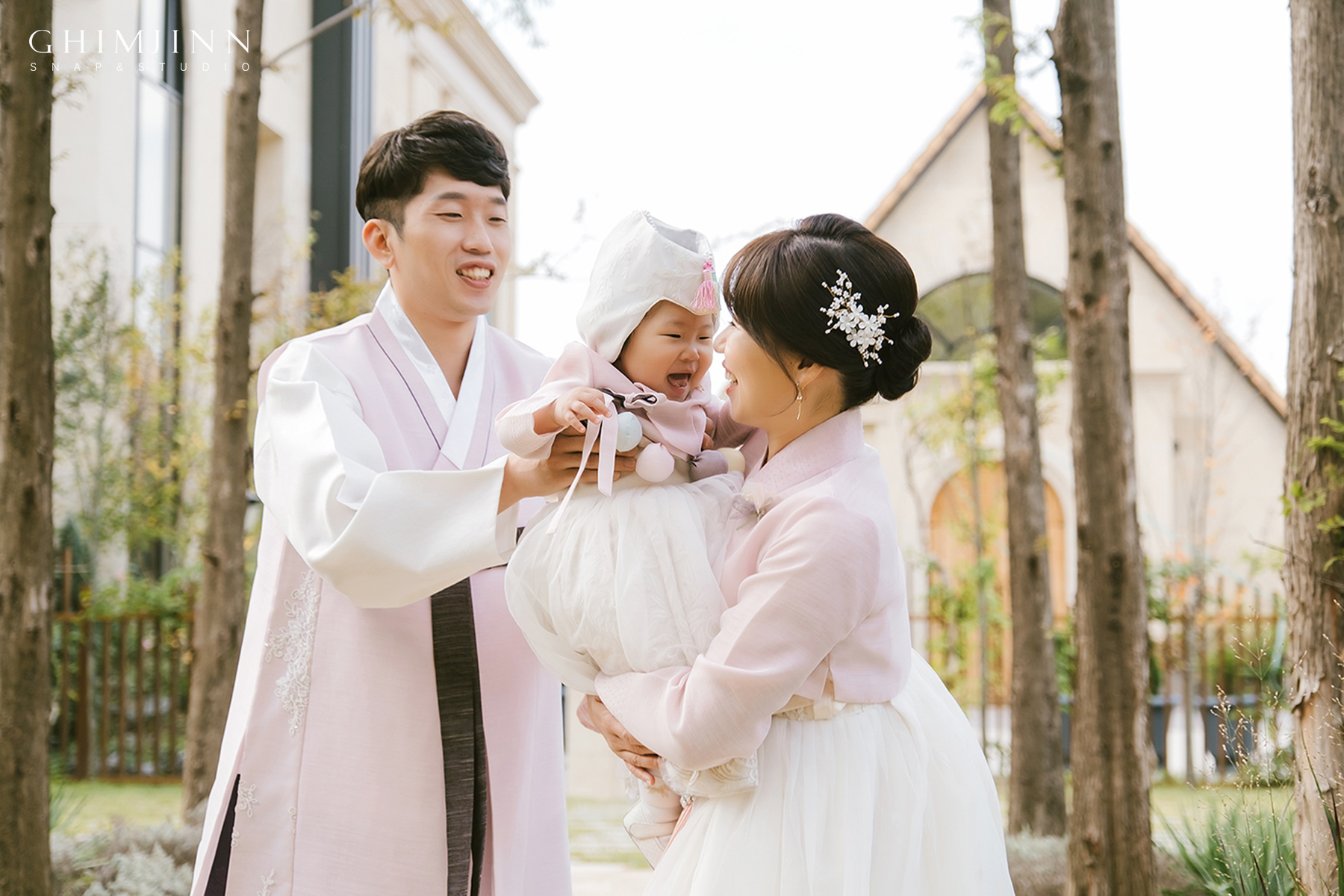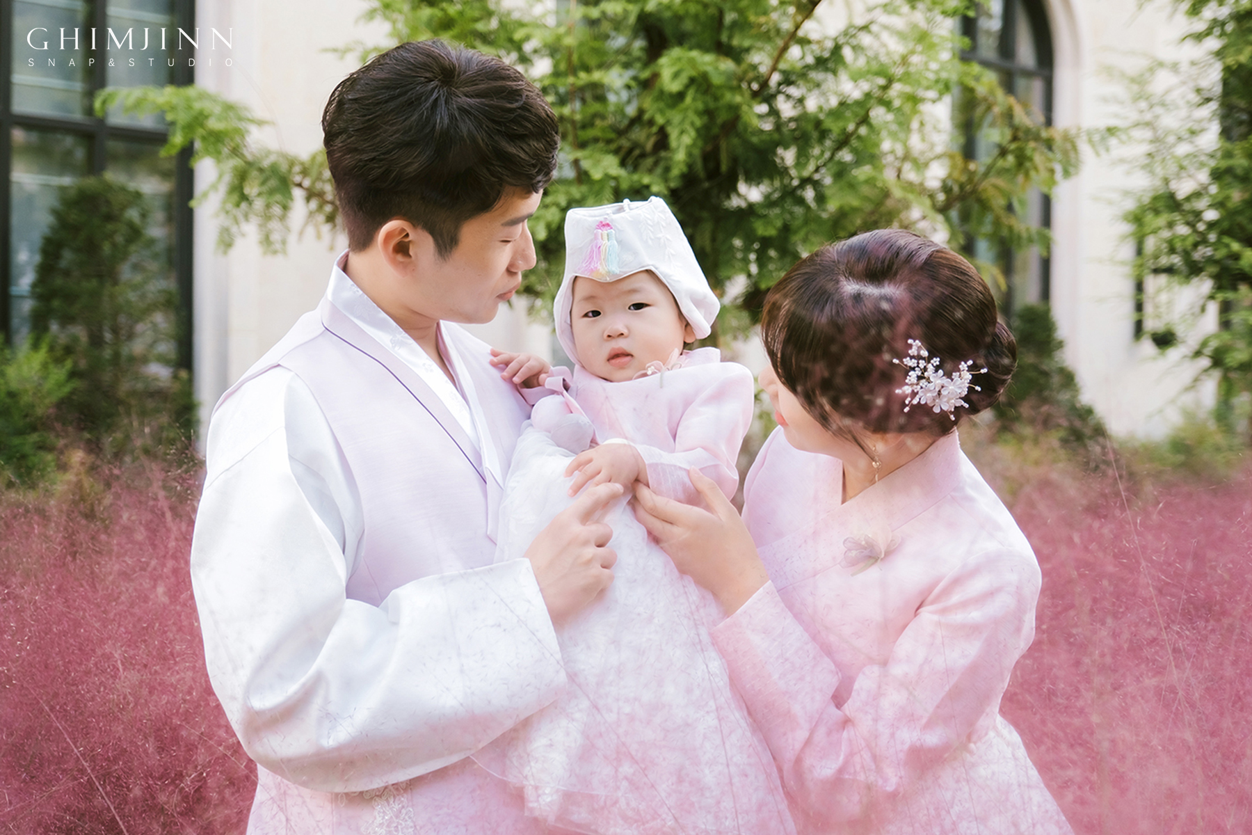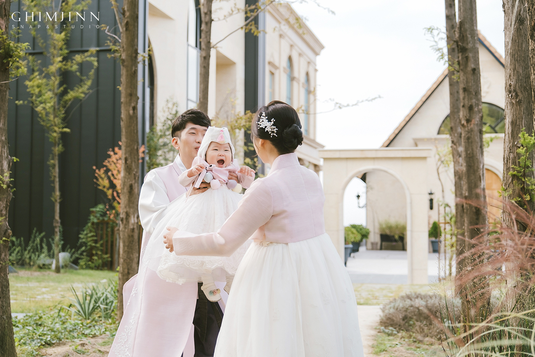 이렇게 작은 정원이 잘 조성되어있어서 야외에서 다양하고 예쁜 촬영이 가능합니다. 촬영 시간대 또한 날은 흐렸지만 해가 지기 전으로 대비가 낮고 전체적으로 부드럽고 포근한 느낌의 사진이 완성되었어요.